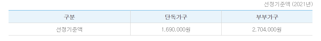 - 저소득수급자: 단독가구 월 최대 300,000원 / 부부가구 월 최대 480,000원
