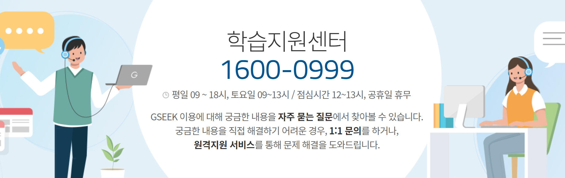 기타 문의사항이 있다면 GSEEK 사이트 내 자주묻는질문 게시판을 이용하시거나 아래 학습지원센터 1600-0999번으로 전화해보시기 바랍니다. 이용시간이 있으니 참고하시기 바랍니다.